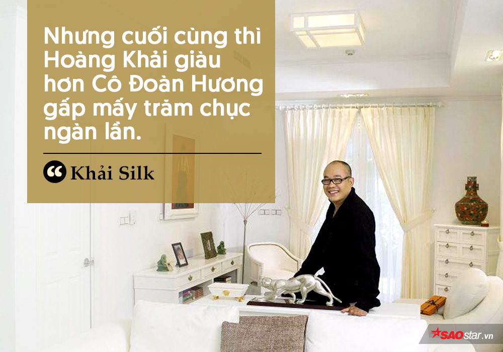Ông Hoàng Khải - chủ chuỗi cửa hàng lụa Khaisilk sinh năm 1964 nổi tiếng với danh hiệu “tỷ phú tiền đô”. Năm 22 tuổi, ông mở cửa hàng Khaisilk đầu tiên và tốt nghiệp nhạc viện Hà Nội, 28 tuổi mở 19 cửa hàng Khai Silk tại các khách sạn 5 sao tại Hà Nội và 1 nhà hàng Khai Brother… Cũng từ đây, sự nghiệp của ông liên tục đi lên, xây dựng “đế chế” Khaisilk ngày một vững vàng, giàu có hơn.