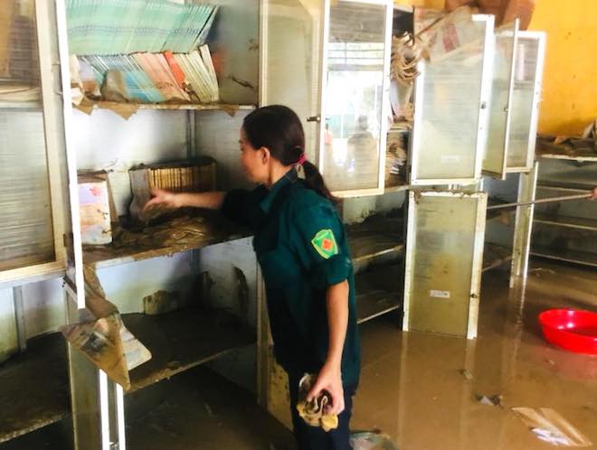 Ảnh hưởng từ cơn bão số 4, trong hai ngày 17 và 18/8 vừa qua, trên địa bàn huyện Con Cuông, tỉnh Nghệ An đã xảy ra mưa lớn, lũ ống, lũ quét… Đặc biệt, tại Trường Dân tộc Nội trú THCS Con Cuông, lũ quét đã làm hư hỏng gần như toàn bộ đồ dùng dạy và học của các thầy cô giáo.