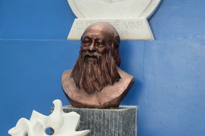 Bức tượng chân dung thầy Cương ở trường THPT dân lập Lương Thế Vinh.
