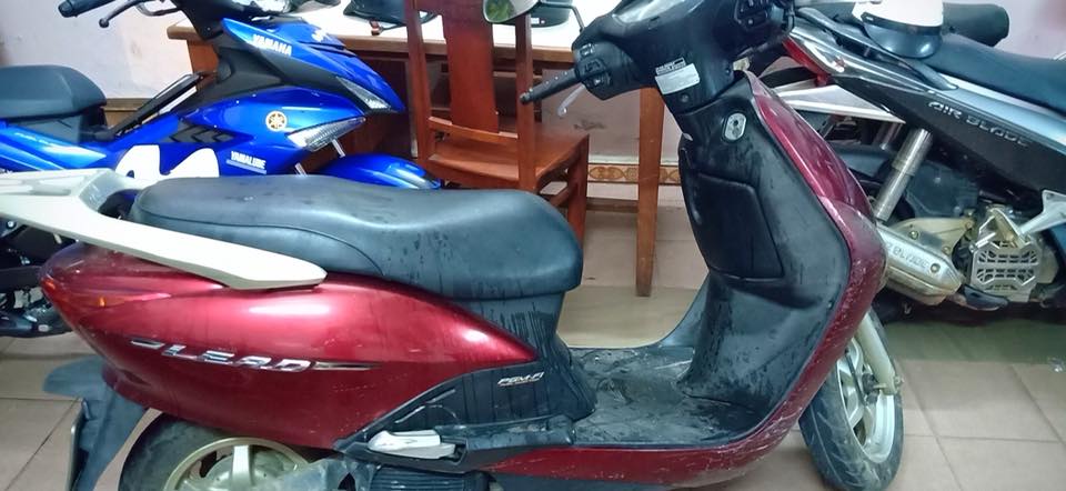 Chiếc xe máy của cô gái bị dính đầy a xít.