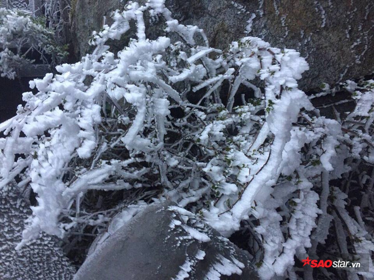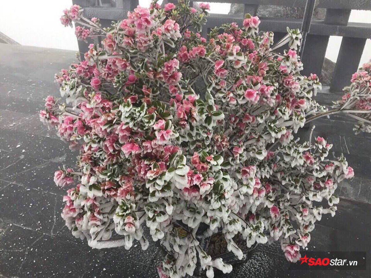 Đáng chú ý, mùa này hoa đỗ quyên rực lửa đang nở kín Fansipan. Khi băng tuyết xuất hiện, chỉ sau một đêm, những cây nhanh chóng biến thành hoa tuyết khiến nhiều người thích thú.
