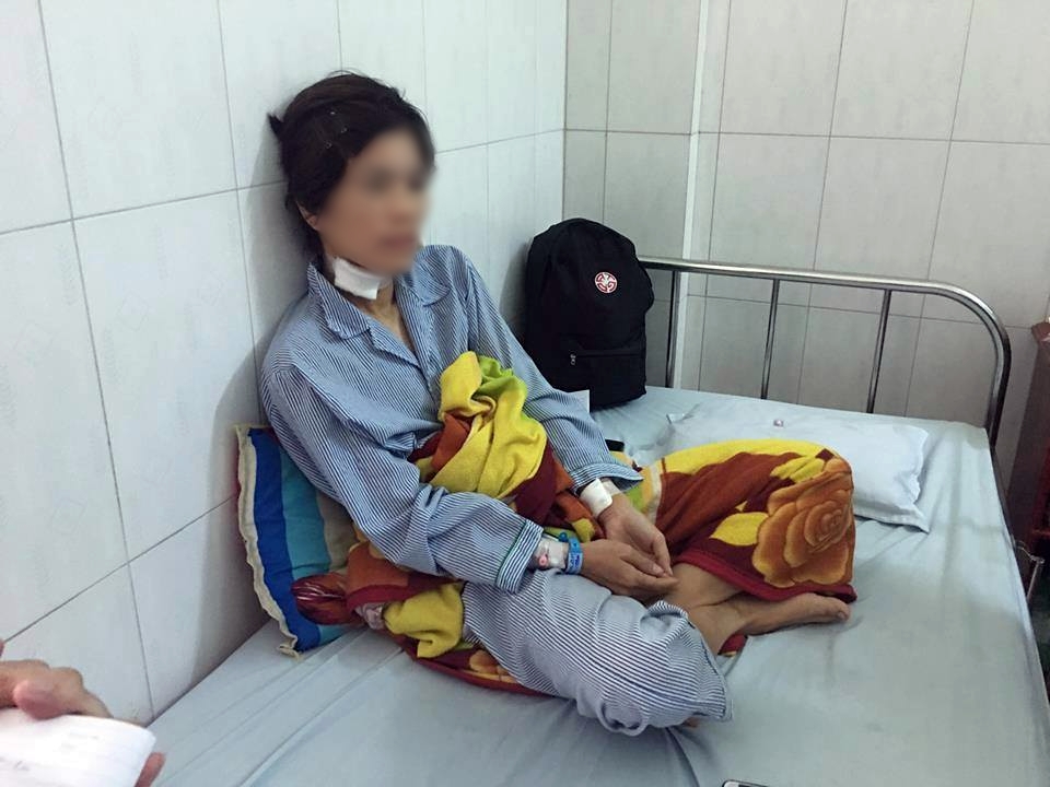 Tại Bệnh viện Đa khoa Vĩnh Đức, các bác sỹ đã thực hiện ca phẫu thuật kéo dài 30 phút để xử lý những vết thương ở vùng cổ, tay trái, tai trái và môi trên của chị Hoa. Trong đó, nghiêm trọng nhất là với vết thương kéo dài 15cm tại vùng cổ trái.