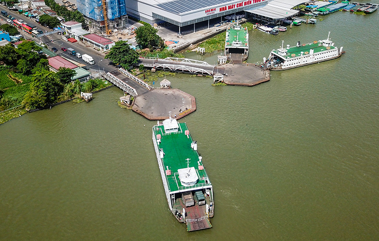 Các chiếc phà Vàm Cống còn hoạt động sau khi cầu bắc qua sông Hậu thông xe hồi tháng 5. Ảnh: Quỳnh Trần.