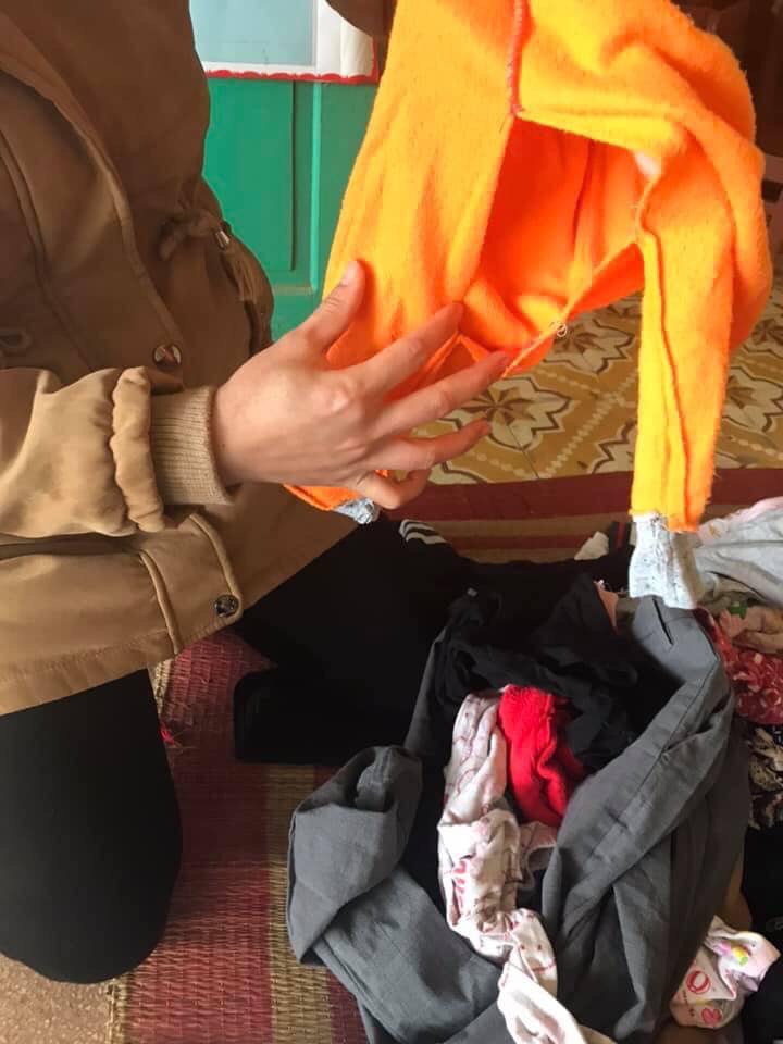 “Chuyện là đứa em mình dạy mầm non trên bản nghèo vùng cao, rét mướt mưa gió nên nó mới mạn phép xin quần áo cũ của trẻ con về. Giặt giũ và chia cho các bé thiếu thốn. Nhưng than ôi. Nhận lại toàn quần lót rách và áo lót cũ. Xem nó post ảnh mà thấy buồn rười rượi!