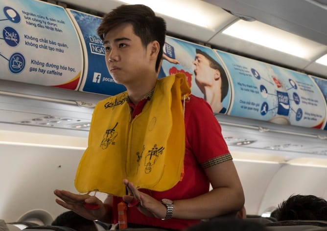 Áo phao trang bị trên máy bay chỉ được sử dụng khi có yêu cầu của tiếp viên chuyến bay, trong trường hợp phải hạ cánh khẩn cấp xuống nước. Mọi hành vi lấy áo phao ra khỏi vị trí khi không có yêu cầu của tiếp viên là vi phạm quy định về an toàn bay, uy hiếp an toàn cho chính hành khách đó và hành khách khác.