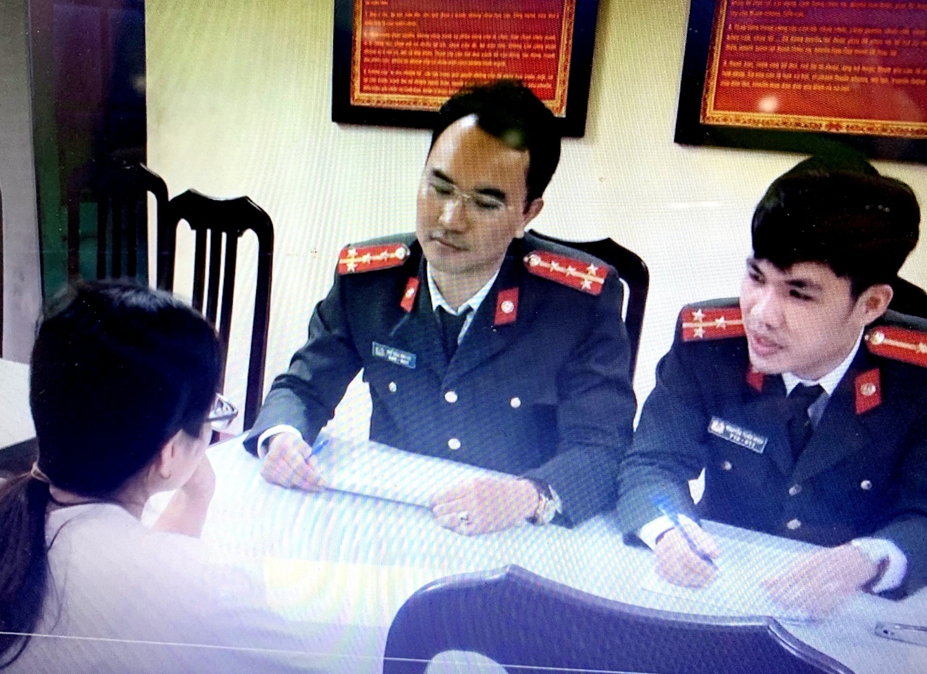Cán bộ Cục An ninh mạng và phòng, chống tội phạm sử dụng công nghệ cao Bộ Công an làm việc với đối tượng đưa tin bịa đặt, xuyên tạc tại Cơ quan Công an.