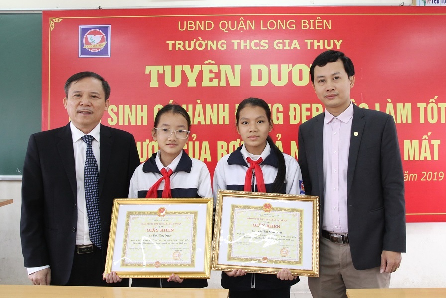 Trước đó, Trường THCS Gia Thụy đã tuyên dương trước toàn trường về hành động đẹp của hai em học sinh Đỗ Hồng Ngọc và Trần Thị Minh Thư.