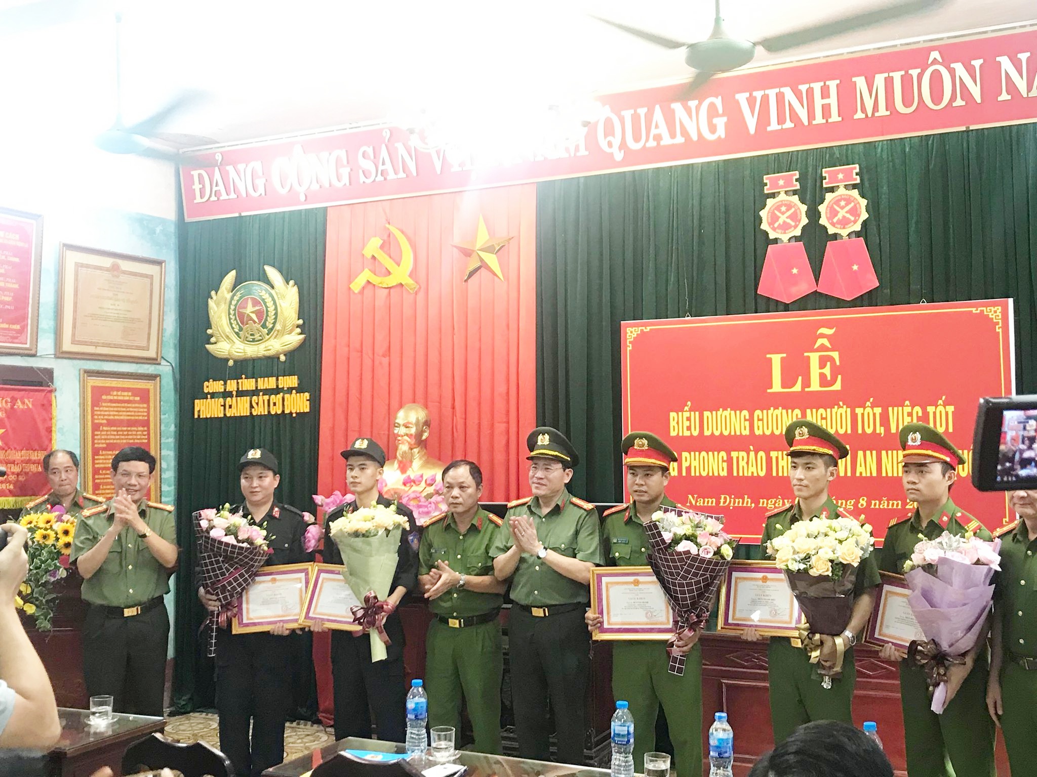 Chiều 5/8, tại trụ sở Phòng CSCĐ, Công an tỉnh Nam Định đã diễn ra buổi biểu dương khen thưởng 5 chiến sĩ đang công tác tại nhiều đơn vị khác nhau của Công an tỉnh Nam Định vì đã cứu, giúp cháu bé bị co giật trên sân Thiên Trường.