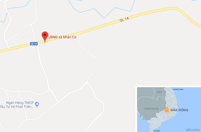 UBND xã Nhân Cơ nơi xây dựng sân tennis. Ảnh: Google Maps.