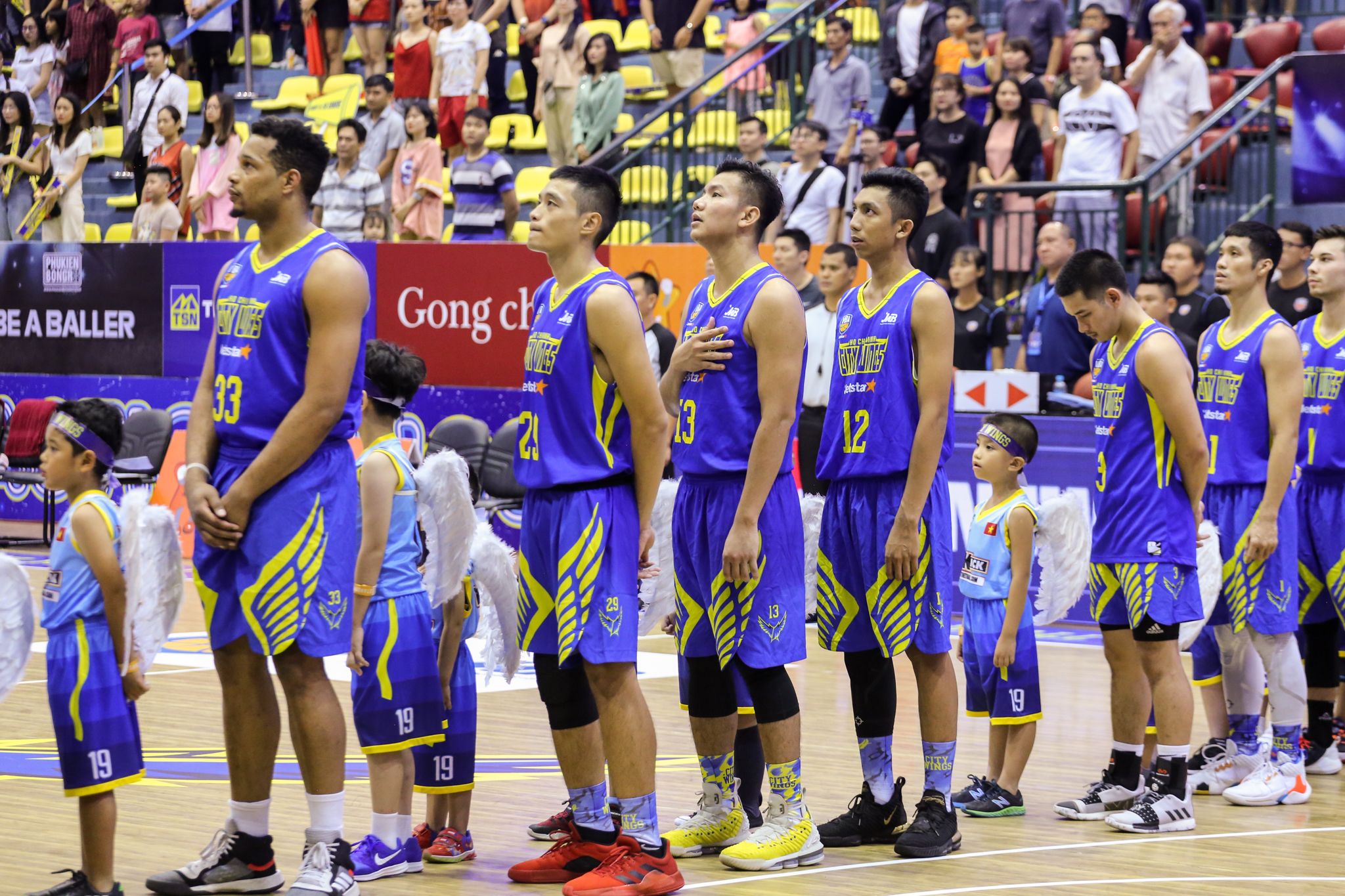 Khán giả theo dõi một trận bóng rổ giữa Hochiminh City Wings và Saigon Heat.