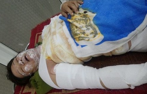 Bà Huyền bị bỏng 40% cơ thể, mức độ III