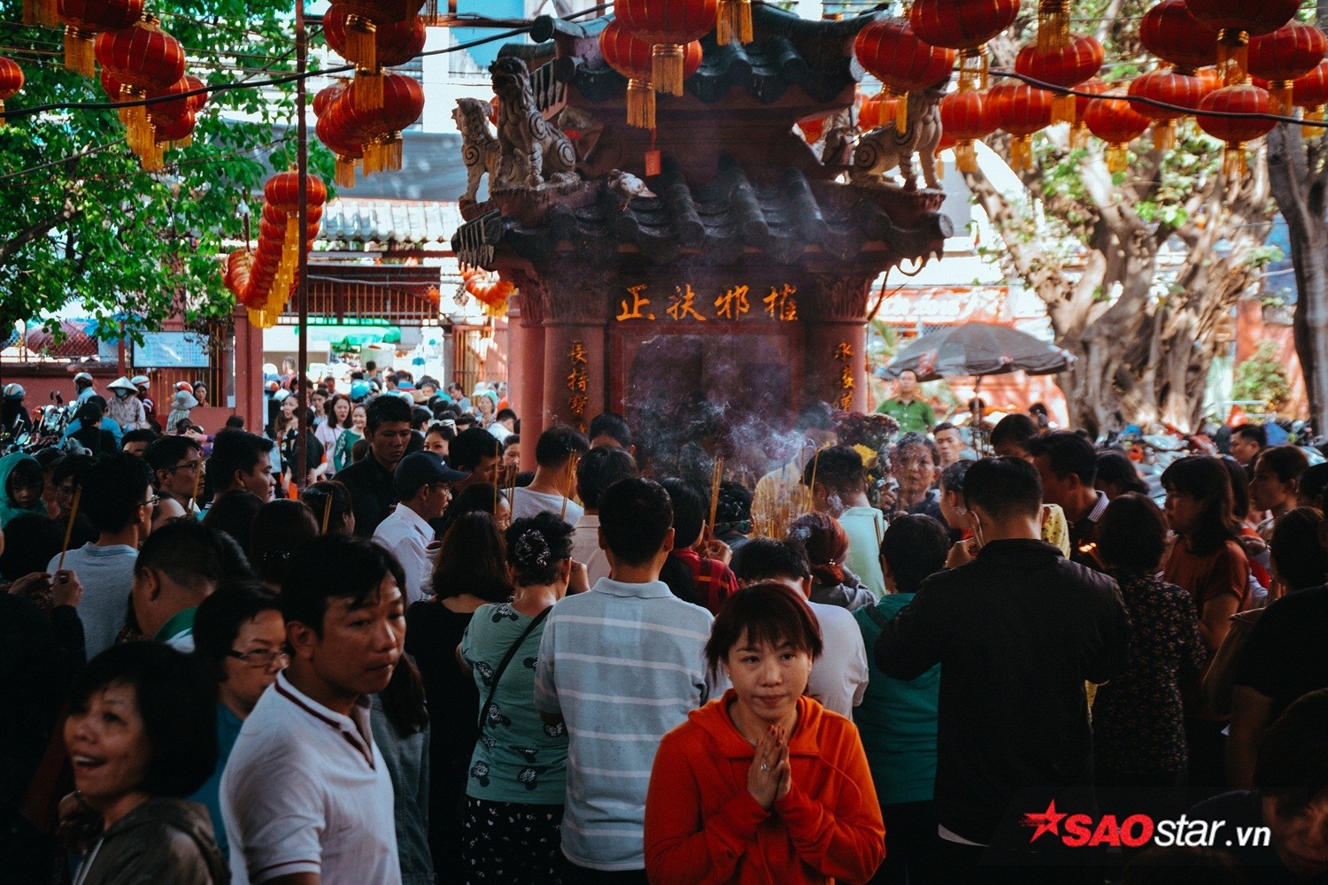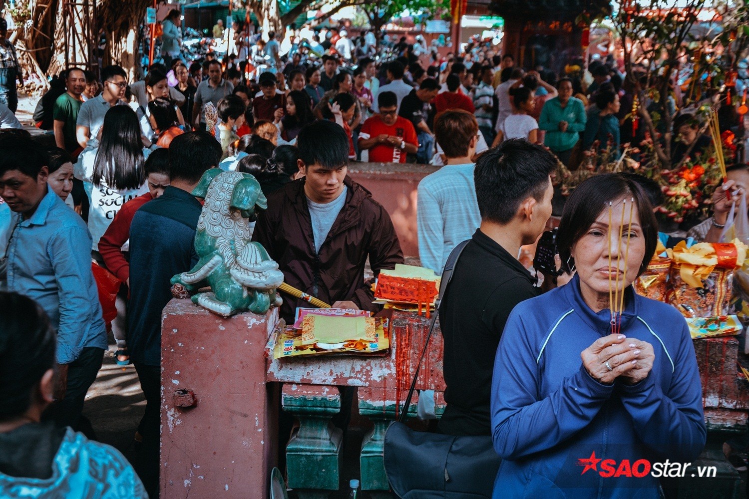 Theo ghi nhận vào lúc 14h, đã có hơn hàng nghìn người đổ về tuyến đường Mai Thị Lựu, chen chân nhau khấn vái tại chùa Ngọc Hoàng. Dù được nhắc nhở liên tục về việc chỉ nên thắp một nén hương, hạn chế đốt vàng mã và đề phòng trộm cắp… nhưng nhiều sự cố vẫn xảy ra. Thời tiết 34 độ C khiến vô số người dân vật vã mồ hôi, mệt mỏi khấn vái. Ngoài ra, vì chờ đợi khá lâu không thể vào được bên trong chùa nên nhiều trường hợp cũng đành khấn vái và thắp hương ngoài điện.