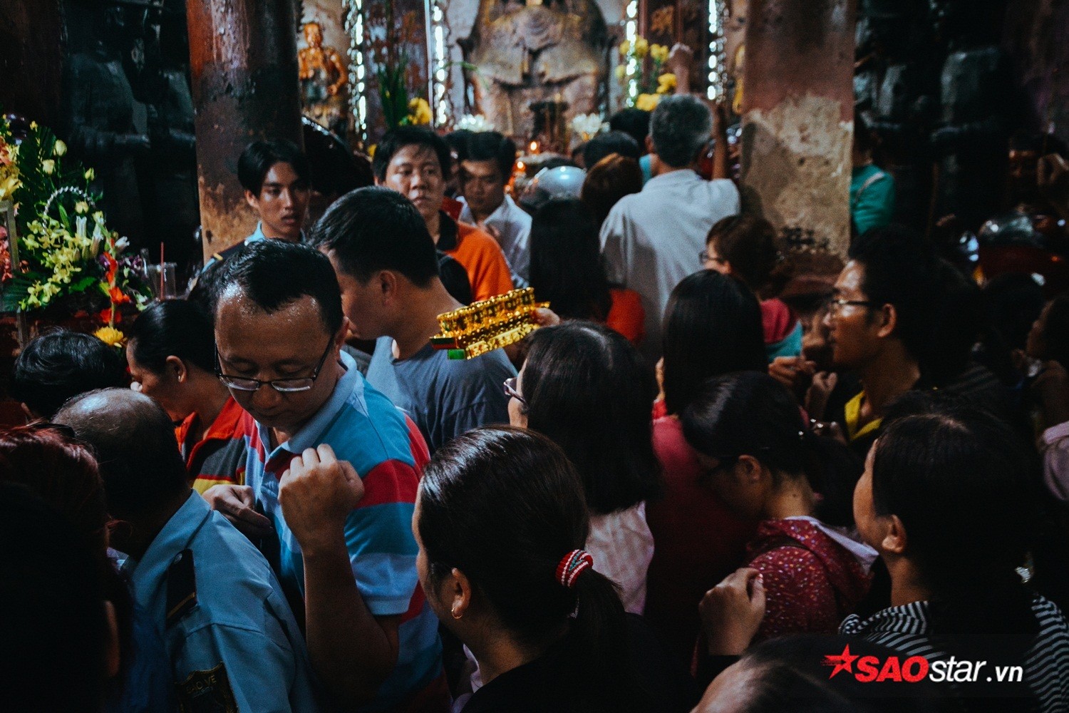 Phải chen nhau mới có thể vào chánh điện.