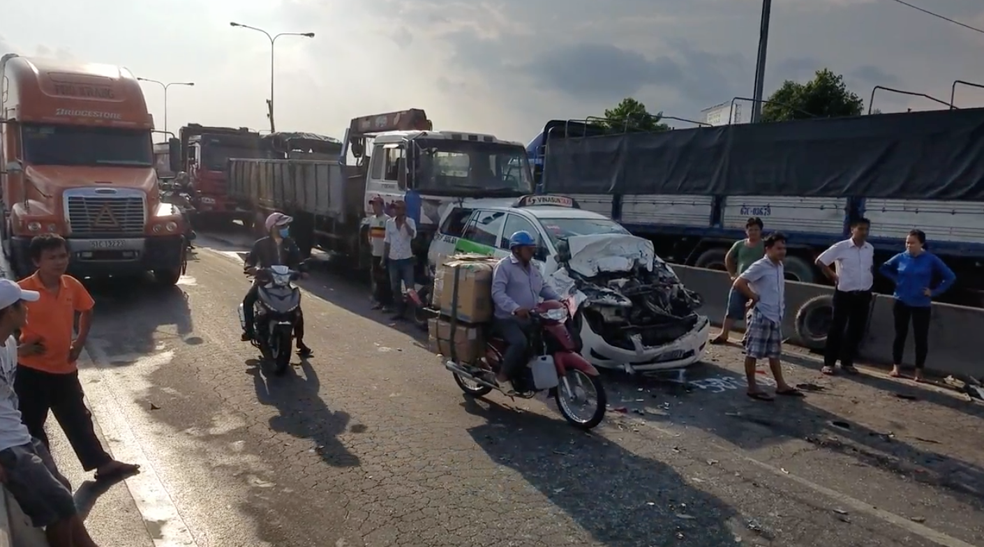 Khi chiếc xe vừa đổ dốc cầu An Sương thuộc phường Tân Hưng Thuận, quận 12 thì bất ngờ húc vào đuôi xe taxi của hãng Vinasun mang BKS 51F-508xx phía trước. Theo đà lao tới, chiếc taxi lao về trước húc vào đuôi xe tải mang BKS 60P-11xx rồi đâm vào thành cầu tạo thành chuỗi va chạm liên hoàn.