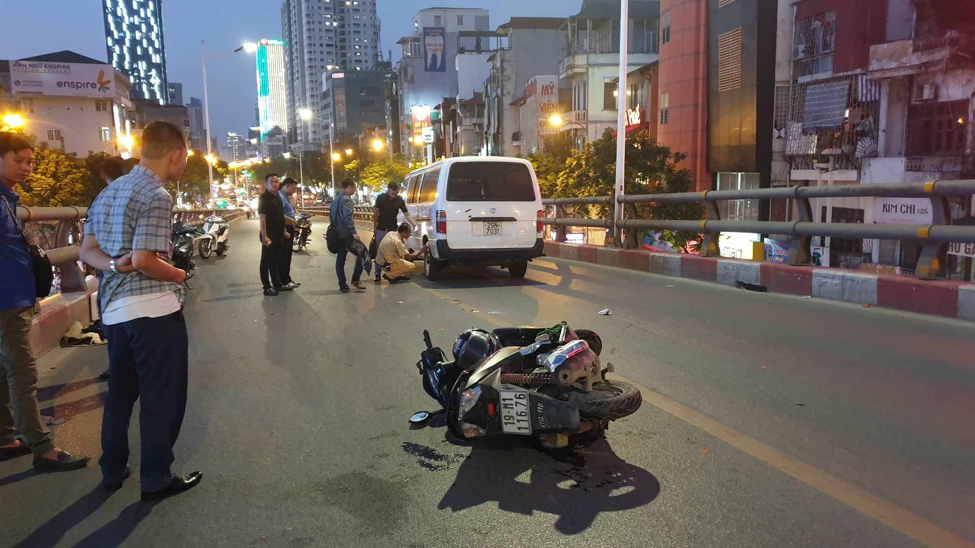 Thông tin từ báo An toàn giao thông, khoảng 17h20 ngày 21/6, ô tô 7 chỗ mang BKS 29N-7031 hướng từ đường Lê Văn Lương qua cầu về đường Láng Hạ thì xảy ra va chạm với một nam thanh niên điều khiển xe máy mang BKS 19M1-116.76 lưu thông chiều ngược lại.