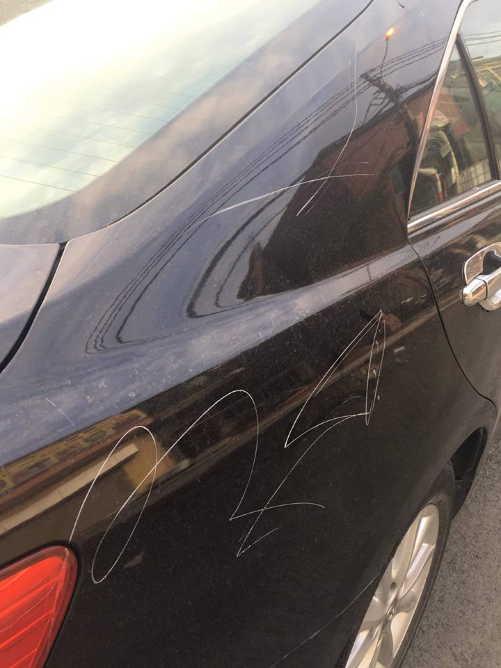 Phần sơn xe ô tô của chị N. bị cào xước.