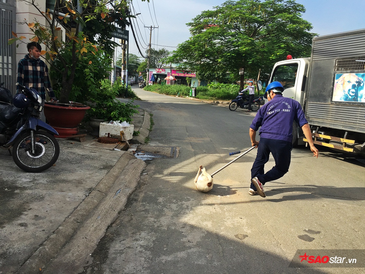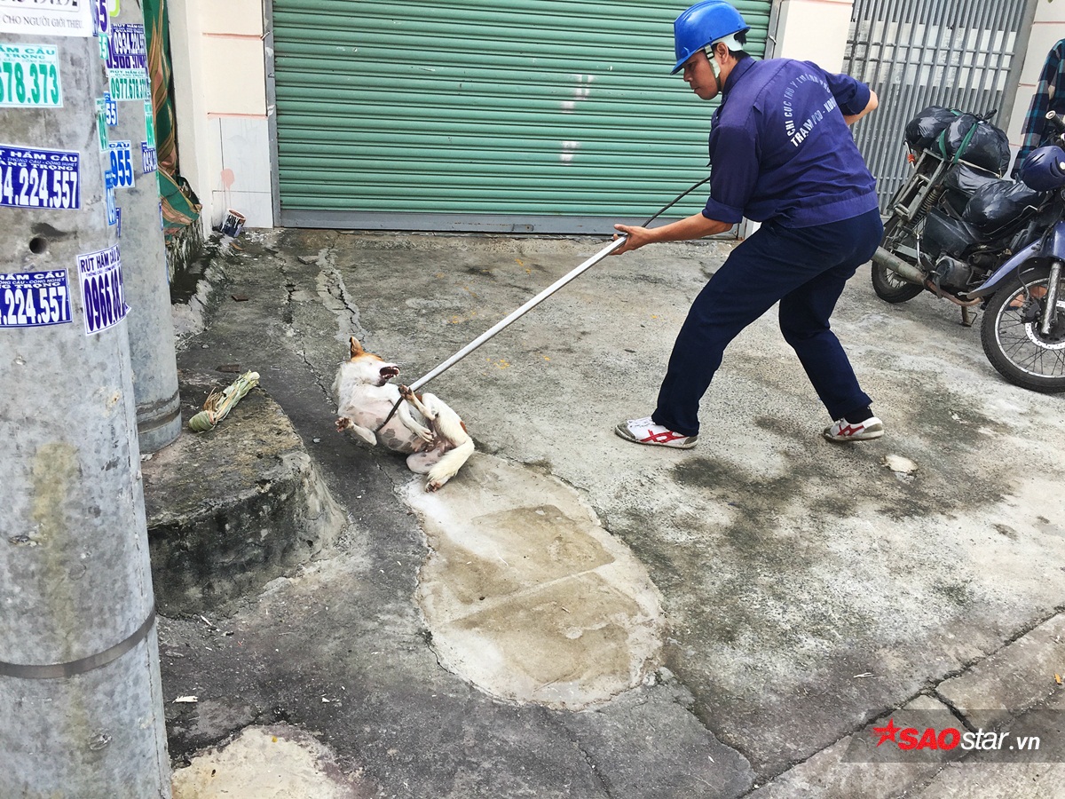 Khoảng 6h30 hôm nay, Đội săn bắt chó thả rông (thuộc Chi cục Thú y TP. HCM) tiếp tục ra quân tại khu vực phường Linh Xuân, Thủ Đức. Đội bắt chó gồm 3 người: 1 lái xe, 2 nhân viên, trên chuyến xe chuyên dụng với lồng sắt, nón bảo hộ và thòng lọng để truy bắt những chú chó không dây xích, không rọ mõm và không có chủ trông chừng.