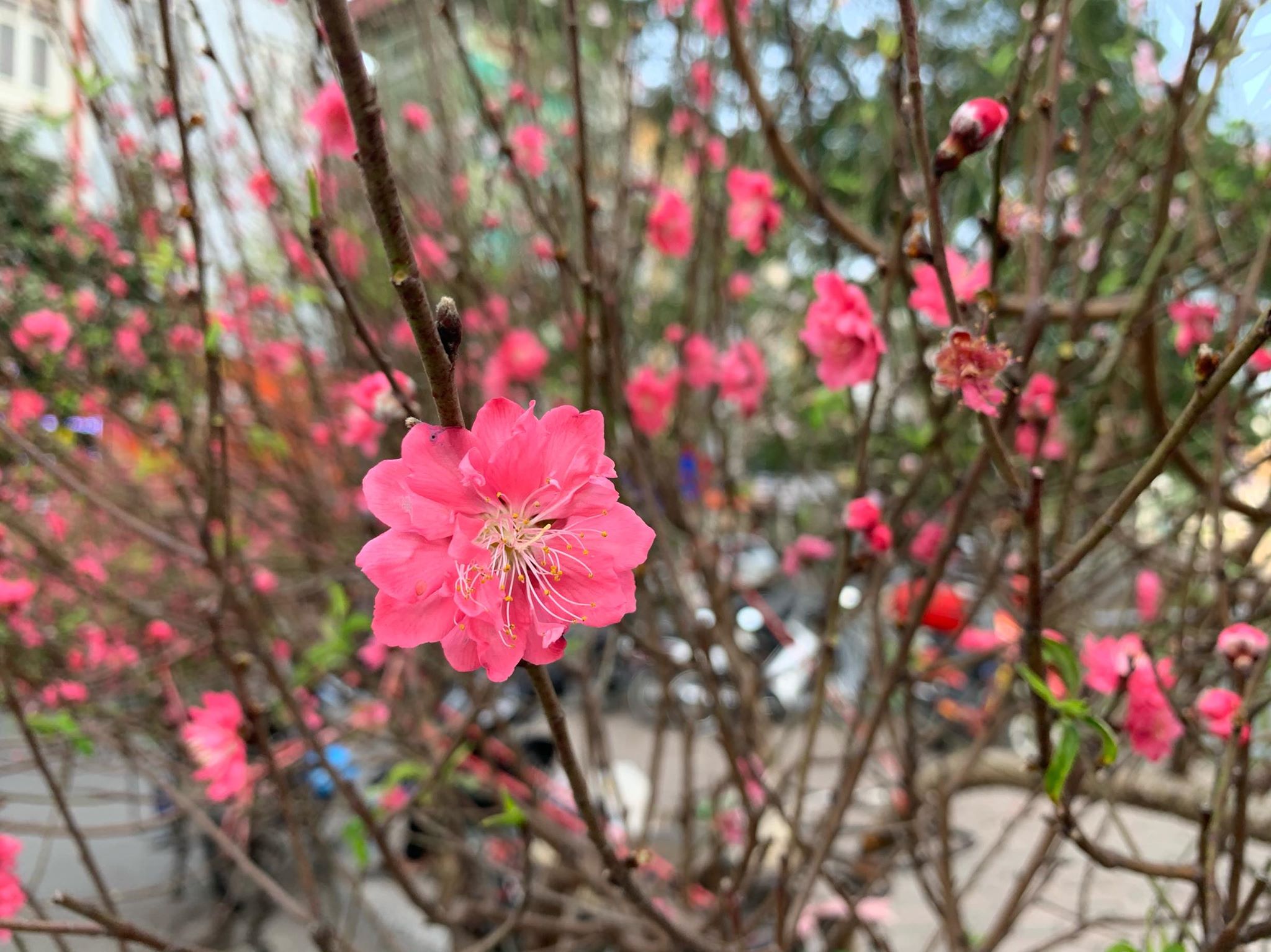 Những cành đào khoe sắc chuẩn bị đón Tết.