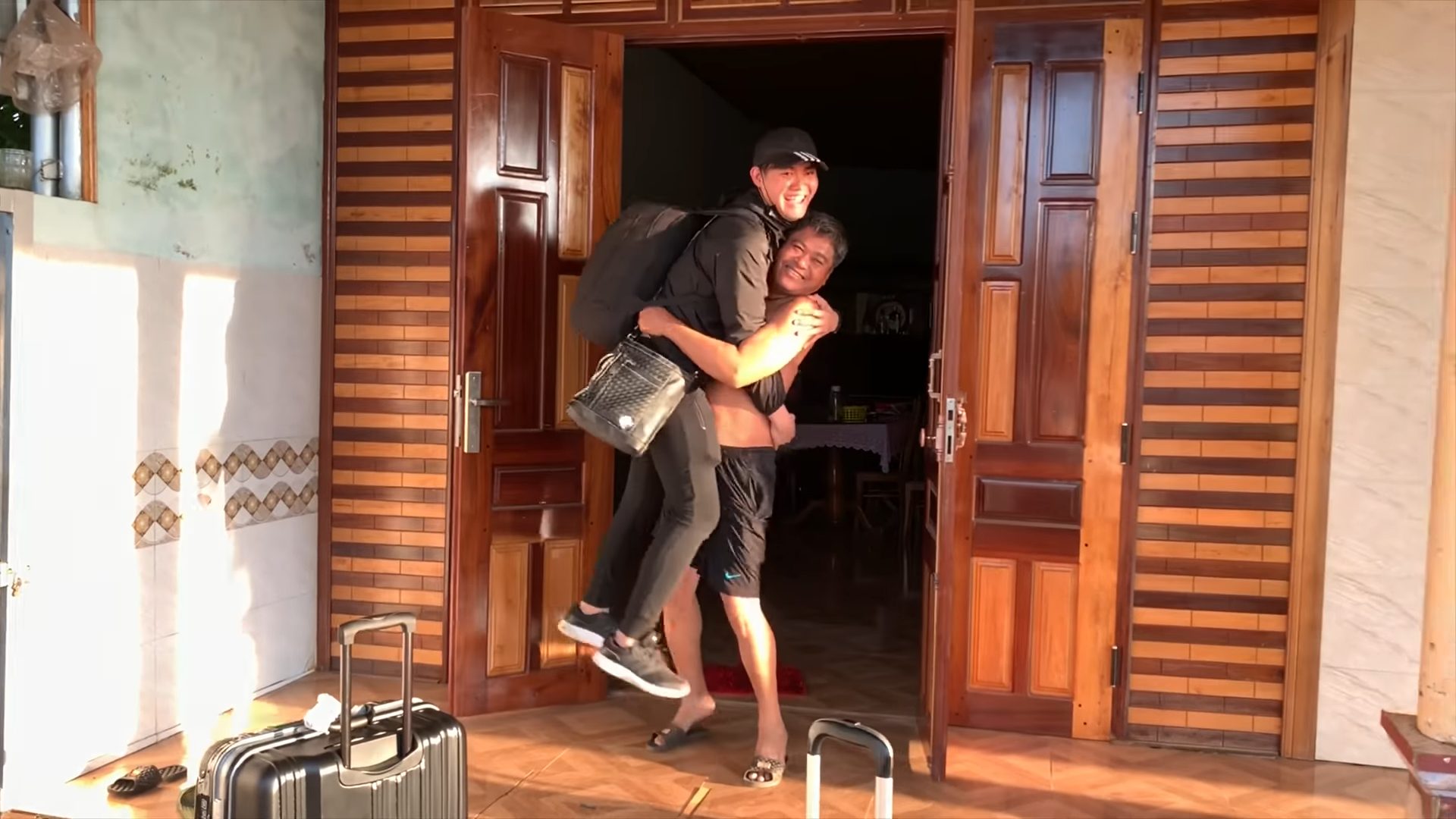Khi Sơn gỡ bỏ khẩu trang, mẹ cậu bạn còn tưởng đứa cháu hàng xóm và cười. Nhưng chỉ vài giây, người mẹ nhận ra: “Ớ, thằng còi! Mày về rồi hả?”, rồi ôm con trong niềm hạnh phúc.