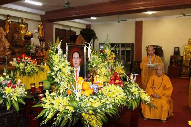 Các Phật tử tại Ninh Bình dâng hương cầu siêu cho hương linh Chủ tịch nước Trần Đại Quang.