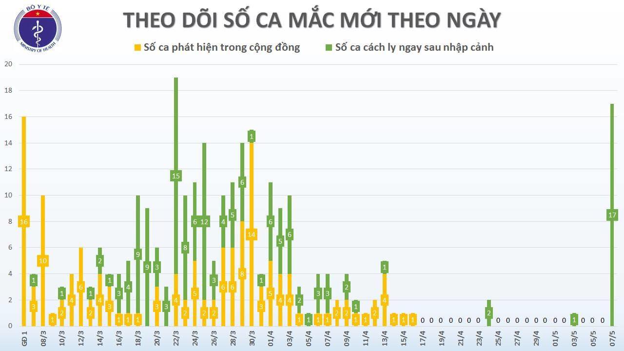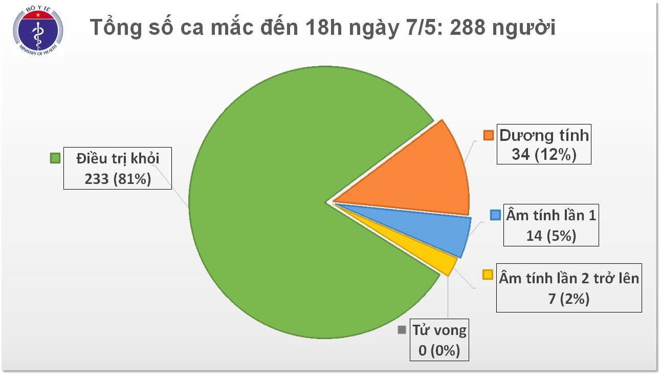Tính đến ngày hôm nay 07/5/2020, Việt Nam có 288 bệnh nhân mắc COVID-19, trong đó 148 ca bệnh “xâm nhập” được cách ly ngay sau khi nhập cảnh; 140 ca do lây nhiễm trong cộng đồng. Kể từ ngày 16/4/2020 đến nay là 21 ngày, Việt Nam chưa phát hiện thêm ca bệnh nào do lây nhiễm trong cộng đồng.