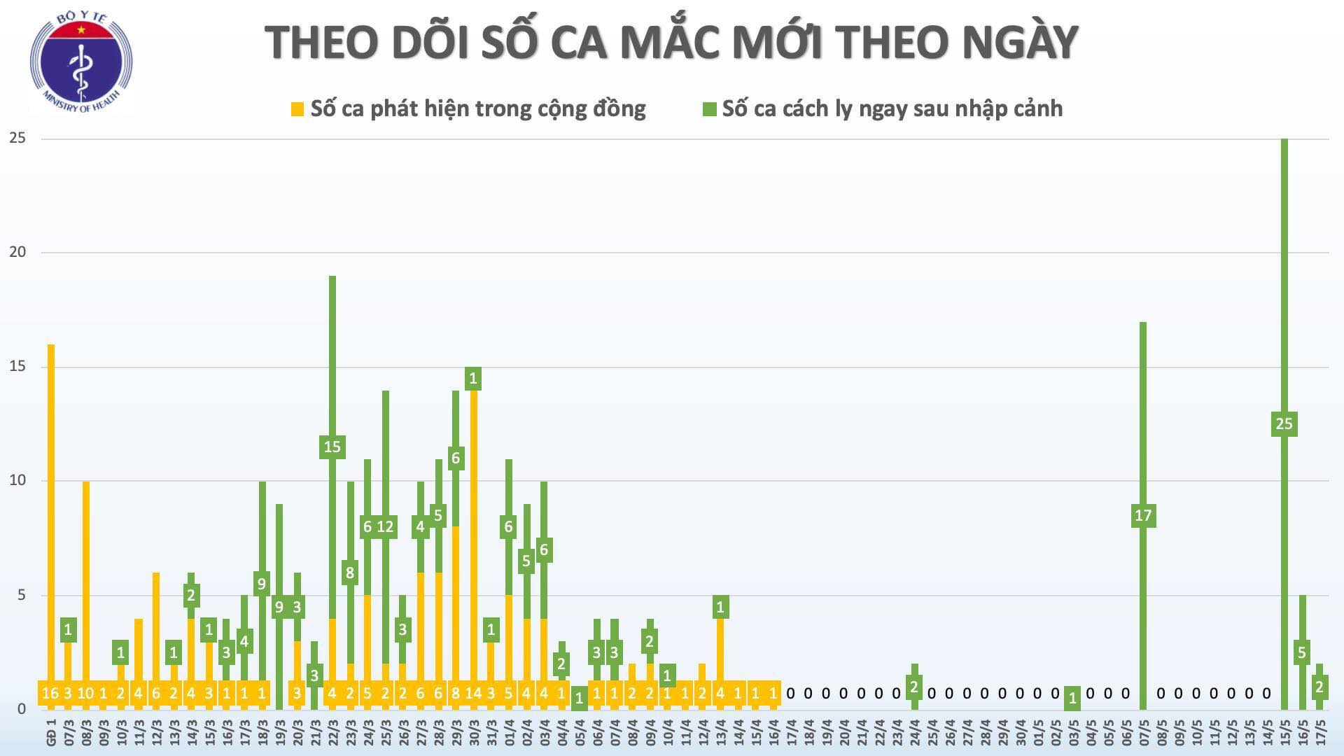 - Tính từ 6h đến 18h ngày 17/5: 02 ca mắc mới.