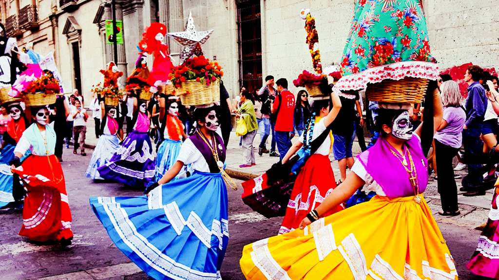 Mexico: Cuối tháng 10 tới đầu tháng 11 là thời điểm hấp dẫn cho du khách khám phá không khí náo nhiệt của Lễ hội Người chết ở Oaxaca. Tại lễ hội này, bạn sẽ được chứng kiến đường phố trở nên sôi động với trang phục đầy màu sắc, pháo hoa, rước kiệu, âm nhạc và rượu mezcal. Nhà nhà chuẩn bị đồ cúng cho người chết, trang trí mộ họ hàng với hoa và nến. Ảnh: A Closer Look Tours.