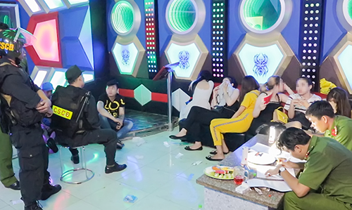Lực lượng chức năng triệt phá tụ điểm ăn chơi. Ảnh: Vnexpress