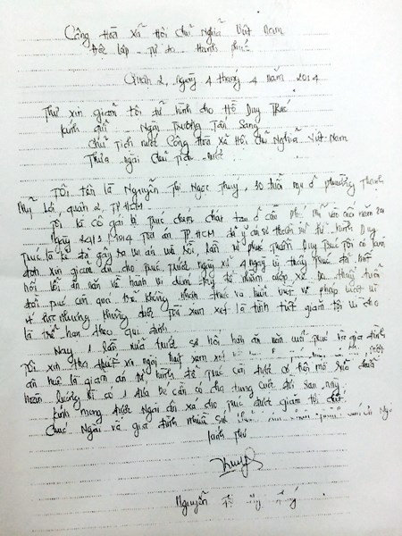“Thư xin giảm tội tử hình cho Hồ Duy Trúc