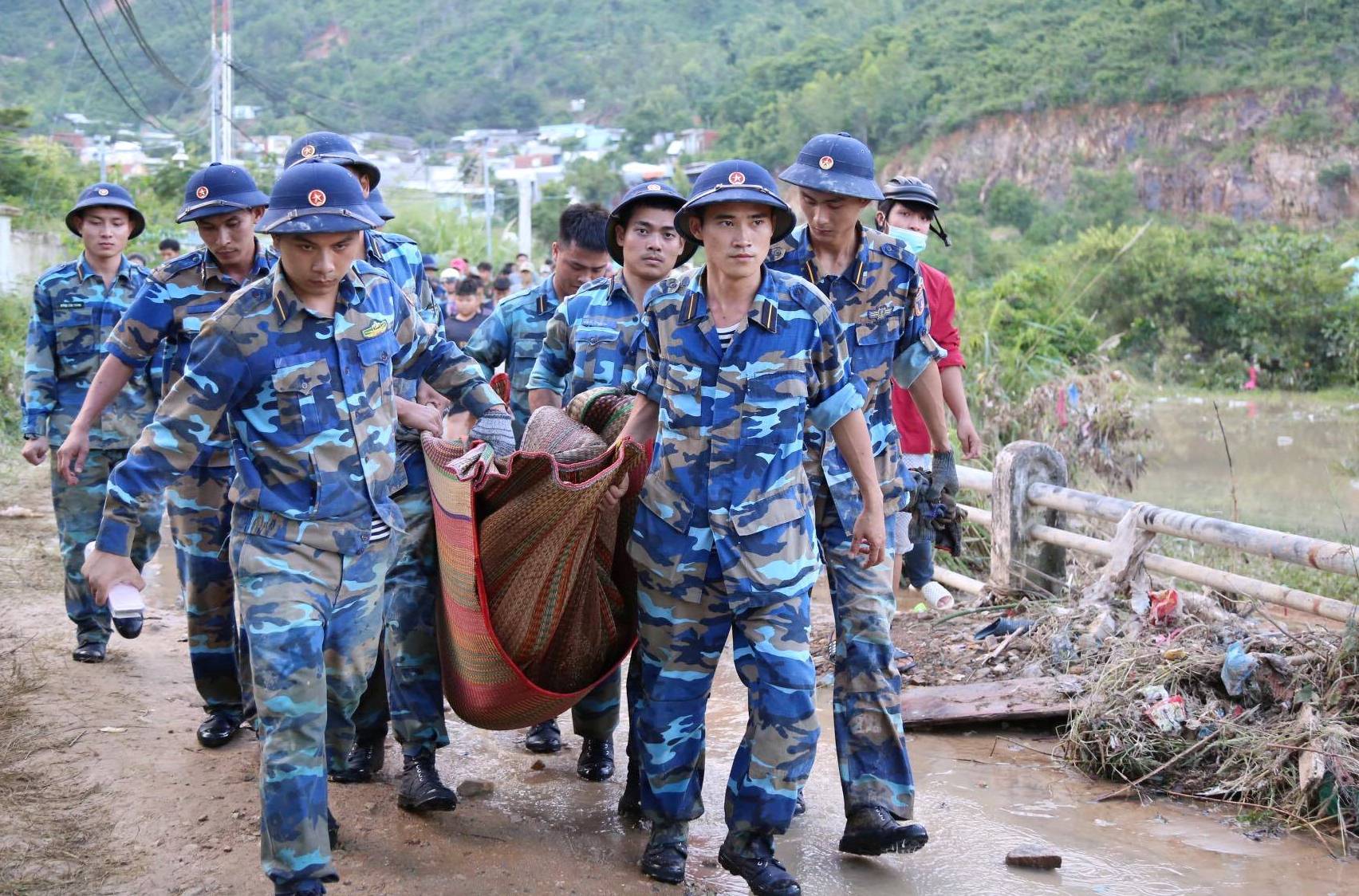Thi thể một người dân Nha Trang được tìm thấy khi bị vùi lấp trong đống đổ nát sau trận sạt lở kinh hoàng. Ảnh: Hải Cường