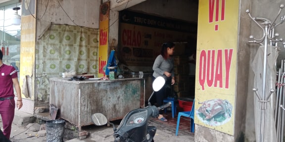 Chị Oanh hiện đang làm thay chồng công việc ở quán vịt quay gần bế xe Yên Nghĩa.