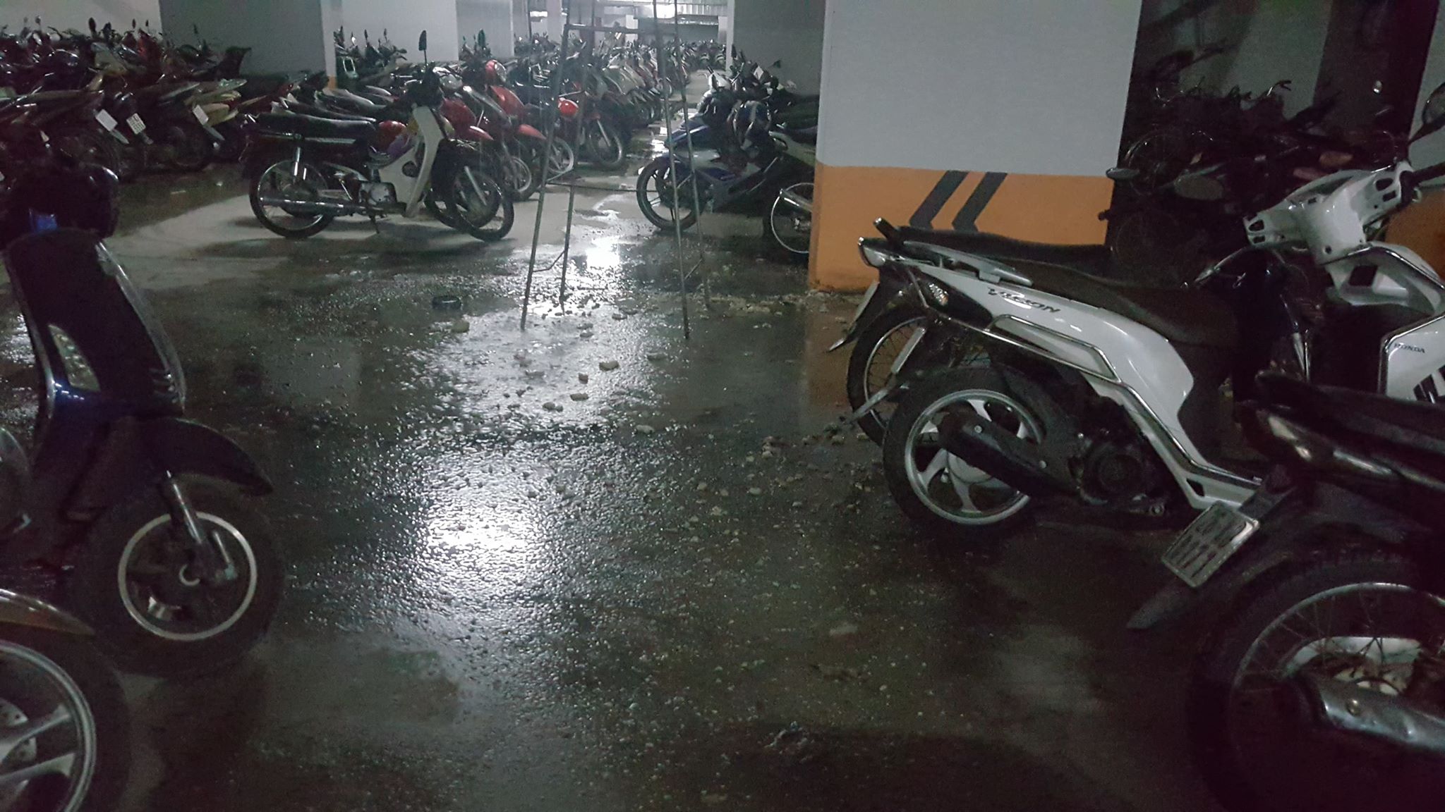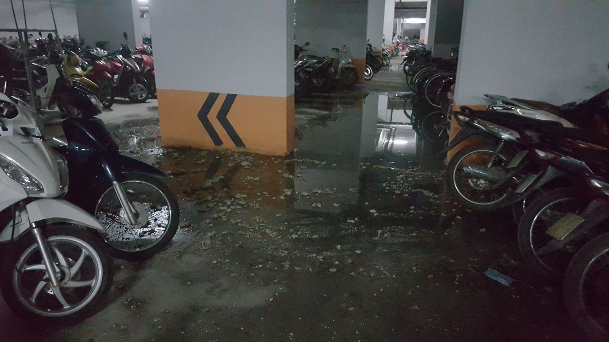 Thời điểm trên, cả khu hầm để xe ngập ngụa trong mùi hôi thối của nước thải, sự việc kéo dài nhiều tiếng đồng hồ nhưng không được giải quyết. Tại hầm gửi xe, những khu vực bị ngập nước thải còn có những váng cục màu trắng có mùi hôi thối, khó chịu.