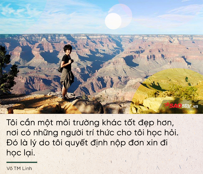 - Có người cần trải nghiệm thực tế để áp dụng kiến thức họ đã học từ sách vở vào cuộc sống, có người khi trải nghiệm rồi cần quay lại trường học để gặt hái những kiến thức cần thiết nhằm tạo ra sự thay đổi lớn hơn. Tôi nghĩ tôi thuộc loại thứ hai.
