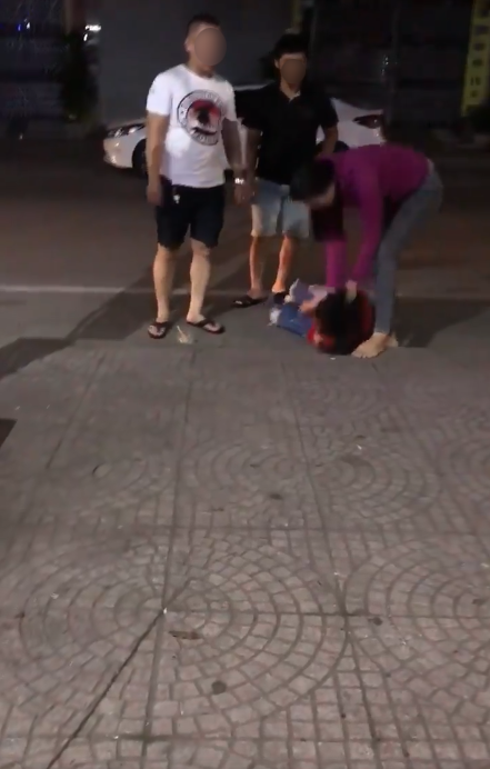 Vừa túm tóc, người vợ liên tục mắng nhiếc: “Mày có biết con tao còn nhỏ đang nằm ở nhà không? Mày thấy chưa nó bỏ mày đấy. Mày thấy chưa hả? Lúc này nó có nhìn thấy mày không hả. Con tao mới được năm tháng nó nằm ở nhà kia kìa. Chúng mày đàn đúm với nhau à”.