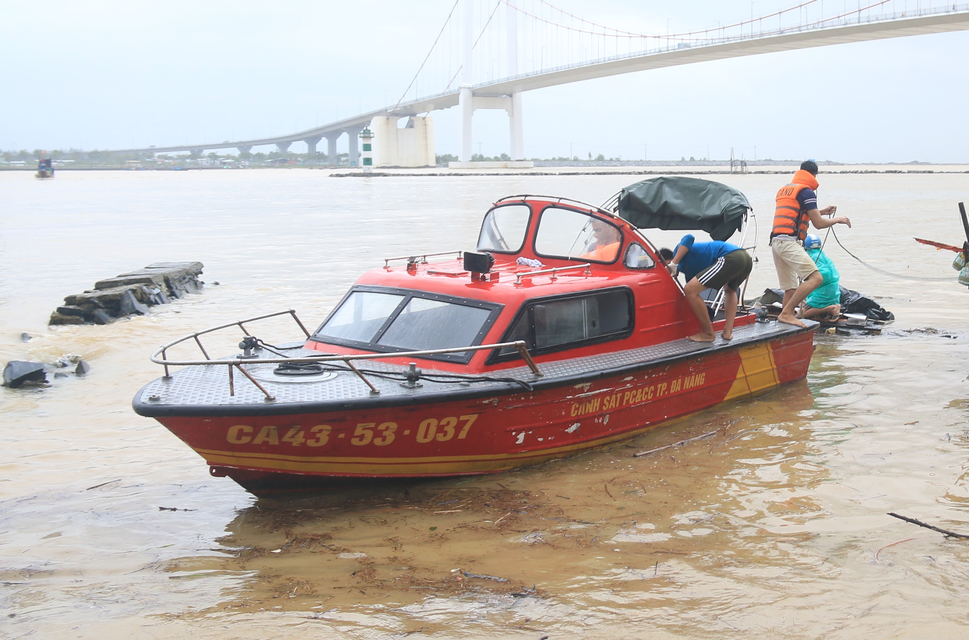 Ngay lập tức, lực lượng chức năng tiếp cận khu vực cầu Thuận Phước (thuộc P.Nại Hiên Đông, Q.Sơn Trà) và kịp thời ngăn cản anh Lê Ph (20 tuổi) đang chuẩn bị nhảy xuống sông Hàn. Hai thanh niên còn lại là K. và L. đã nhảy cầu, mất tích.