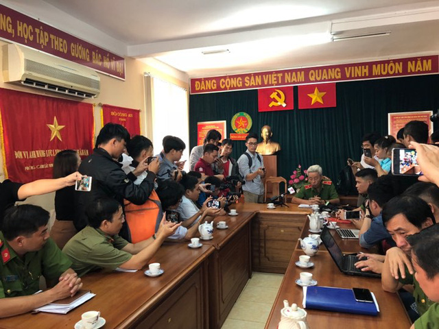 Công an TP. HCM đang tổ chức họp báo thông tin về vụ án. Ảnh: Dân Trí.