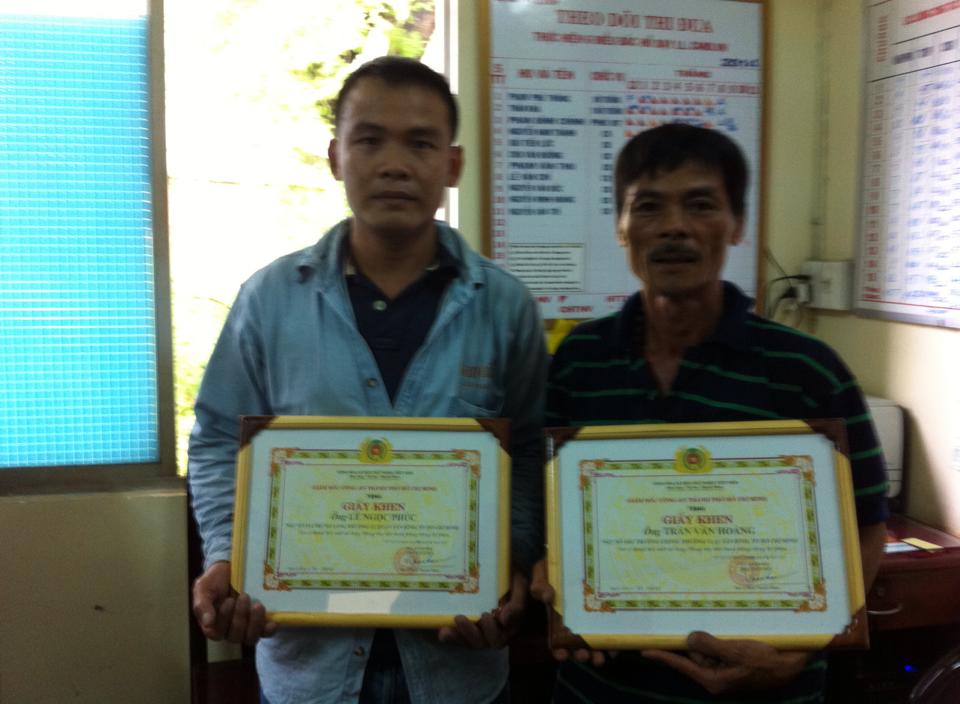 Ông Hoàng cùng một hiệp sĩ khác nhận bằng khen. Ảnh: FBNV