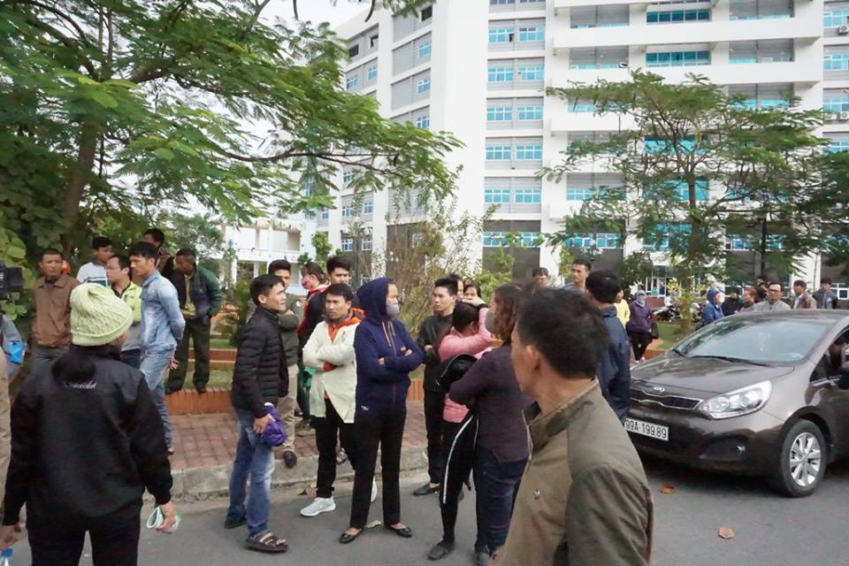 Người nhà các cháu bé tử vong tập trung ở khuôn viên Bệnh viện.