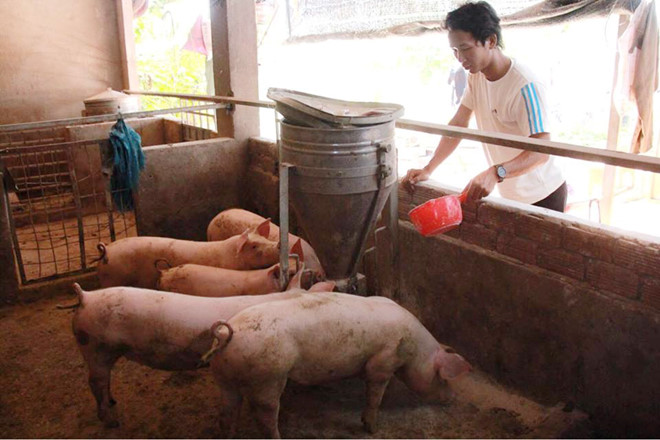 Anh Dương về nhà nuôi lợn sau khi bị chấm dứt hợp đồng. Ảnh: Minh Lộc.