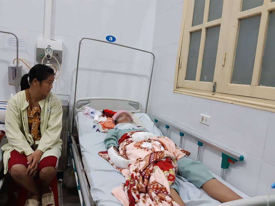 Theo chị Lả, ngày xảy ra sự việc hai vợ chồng chị đang cùng nhau đi làm phụ hồ ở Bắc Ninh. Khi mọi người thông báo con bị nạn, cả hai tức tốc về quê, lúc đó cháu đã được chuyển ra bệnh viện tỉnh để điều trị. Kể từ đó đến nay, phía gia đình nhà nghi phạm gây án thường xuyên cắt cử người túc trực cùng gia đình để chăm lo cho cháu T.