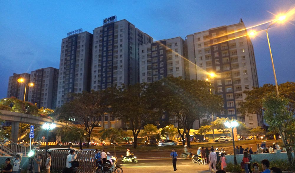Về đêm, chung cư Carina Plaza chìm trong bóng đen bao trùm