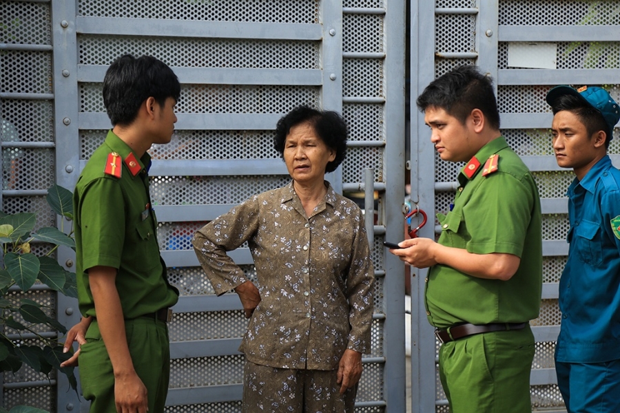 Bà Ba đang kể lại sự việc cho cảnh sát.