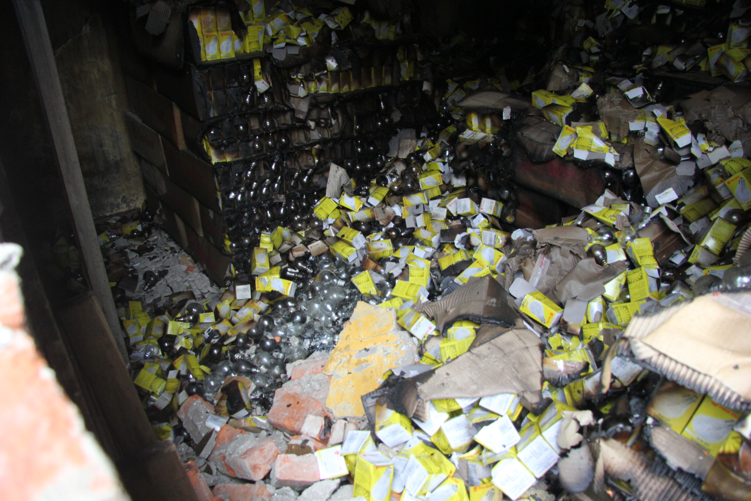 Nhiều bóng đèn hư hỏng sau hoả hoạn.