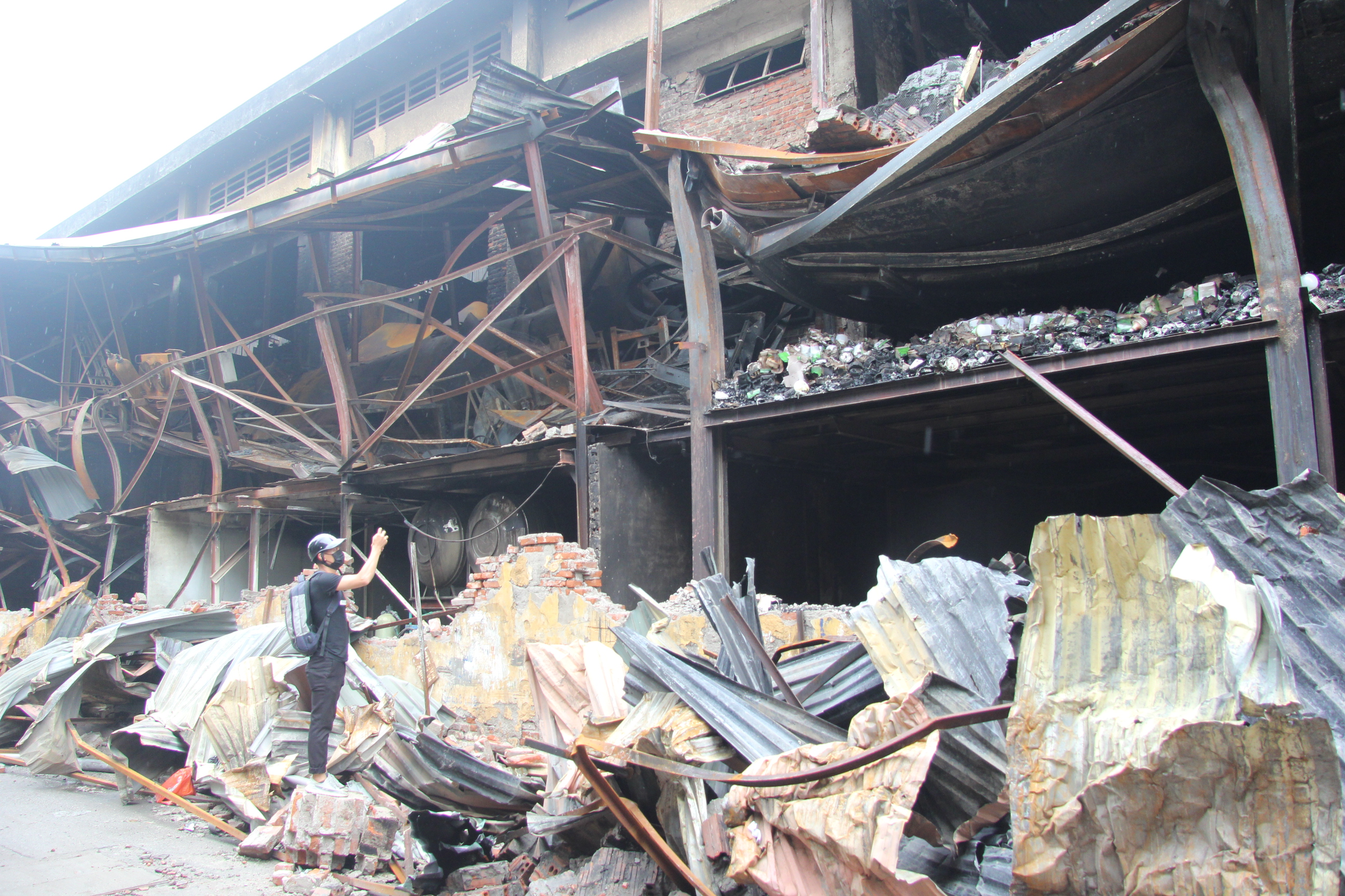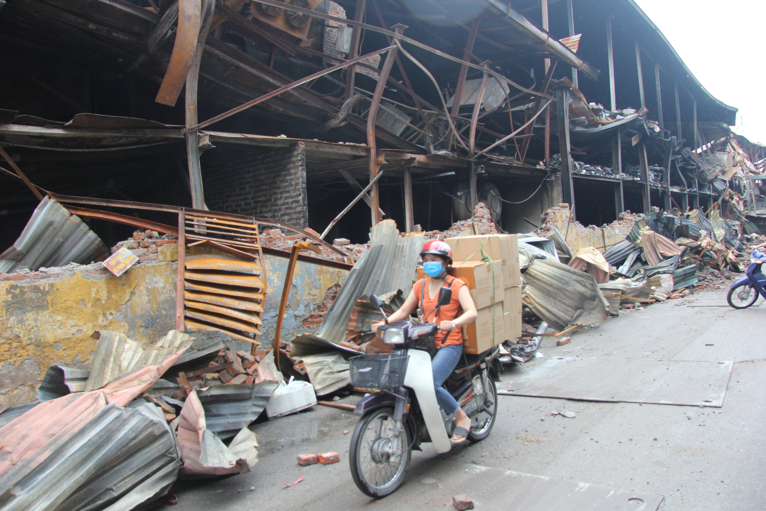 Hiện trường tan hoang sau hoả hoạn.