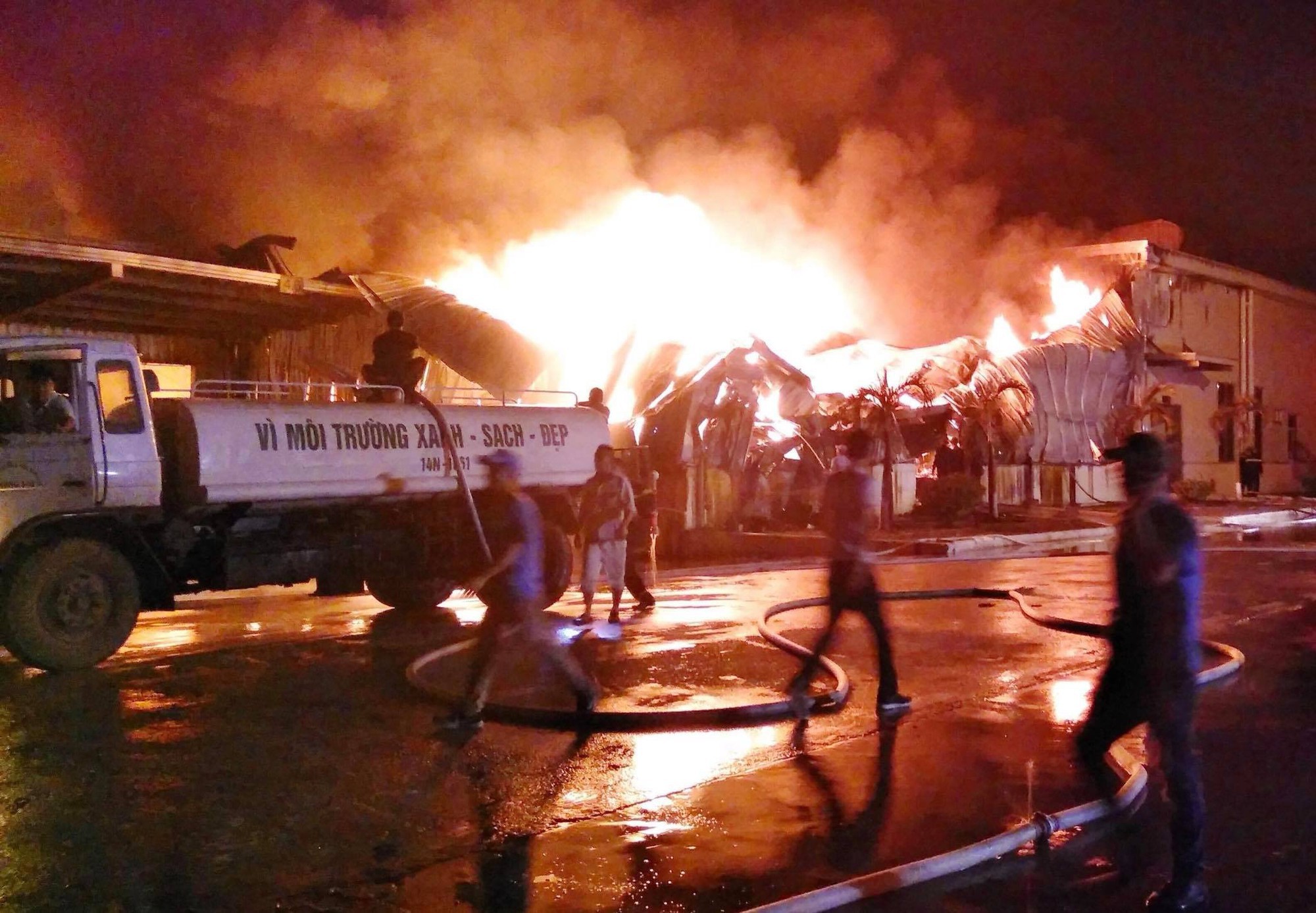 Ngọn lửa lớn bao trùm cả khu nhà xưởng. Ảnh: Phương Thảo.