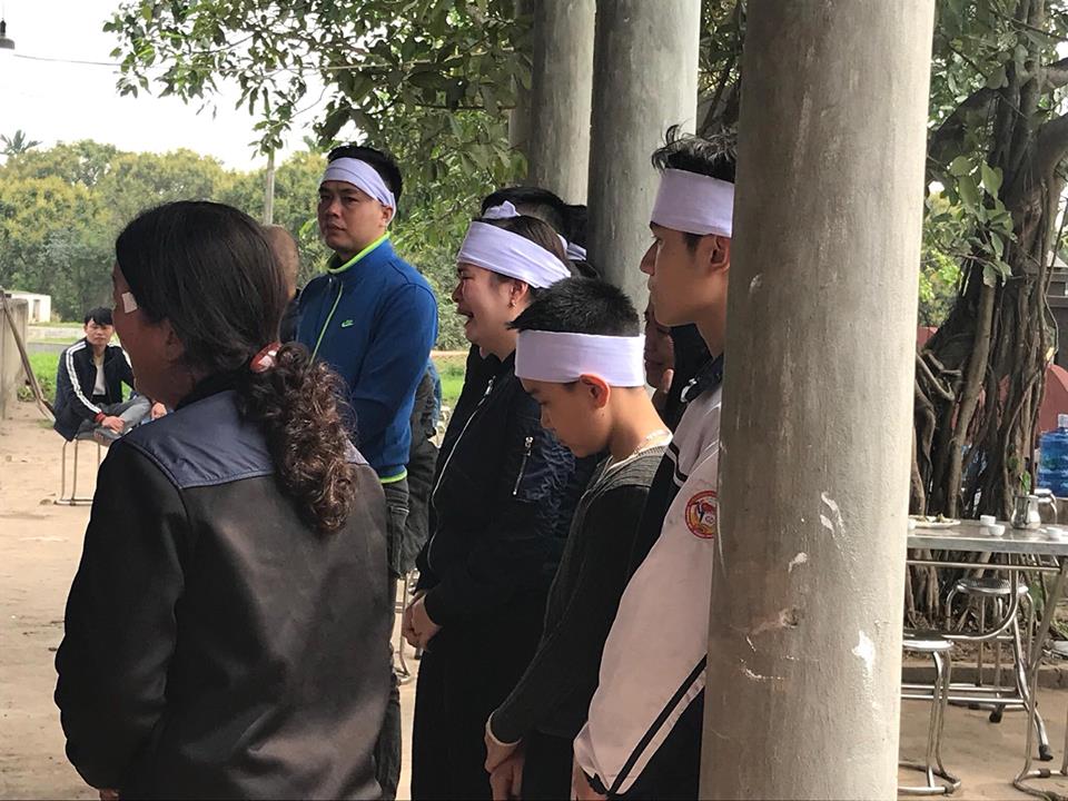 Ngồi bên cạnh linh cữu người vợ sắp cưới, anh T. liên tục gạt nước mắt. Nỗi mất mát quá lớn khiến anh T. gần như suy sụp hoàn toàn. Nhiều người thân và dân làng tới động viên, an ủi.