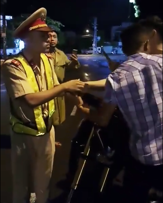 Thiếu úy Linh là người bị ngã trong clip làm việc với dân trong một vụ tai nạn tại phường Ngô Mây (TP Quy Nhơn, Bình Định) vào tối 7/11.