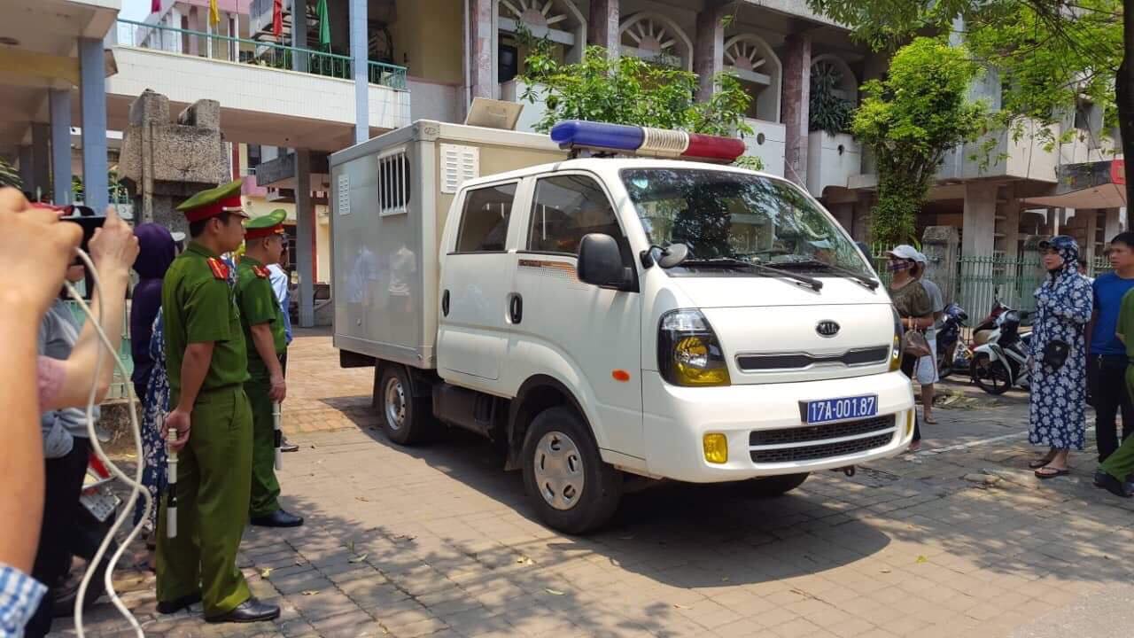 Xe chở bị cáo rời phiên toà.