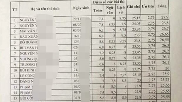Danh sách điểm thi bất thường đang được lan truyền trên mạng.