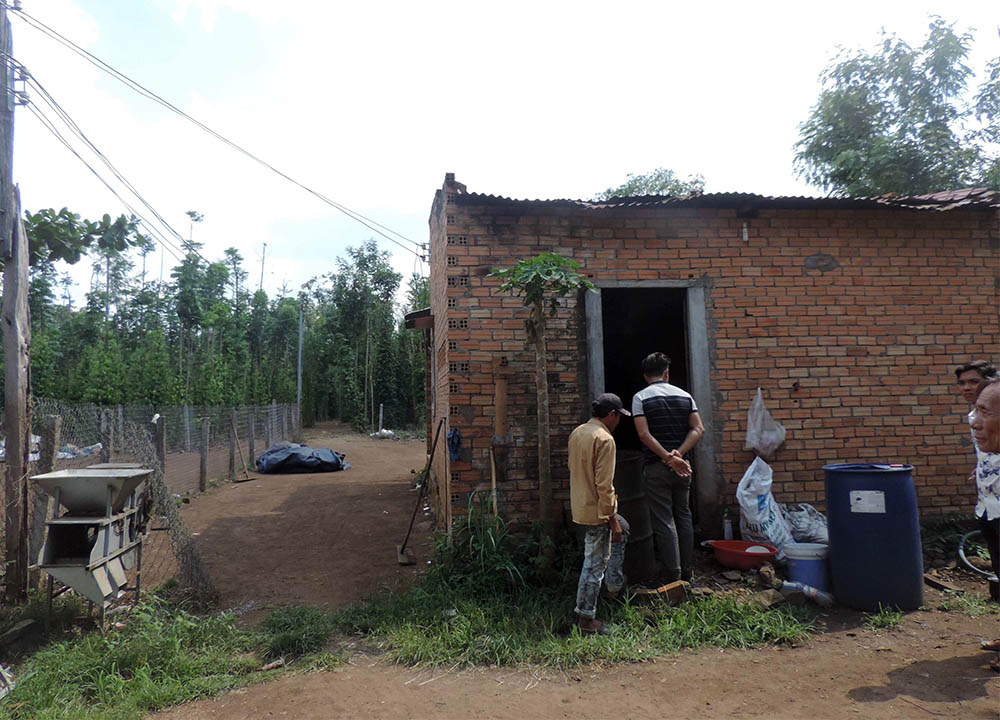 Hiện trường vụ án được xác định là một căn chòi xây gạch, nằm trong khu rẫy trồng tiêu rộng khoảng gần 4ha. Ghi nhận của cơ quan điều tra: hiện trường không có xáo trộn lớn, có nhiều vết chân dính máu, cửa sau căn chòi cũng có vết máu, nhiều dấu vết khả nghi.